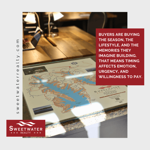 A lake property is not purchased like a standard house. Buyers are buying the season, the lifestyle, and the memories they imagine building. That means timing affects emotion, urgency, and willingness to pay.